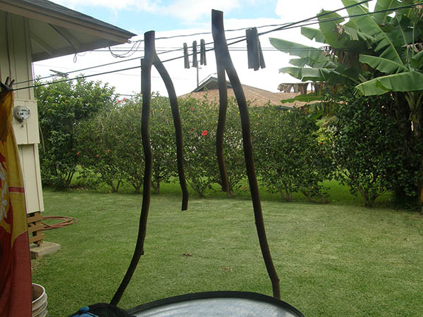 “‘Lomi’ is to massage something, to tenderize something, rub out,” Leilani explains. “As in any Native Hawaiian cultural practice, the practice of lomilomi is done with a sense of reverence and prayer. There’s always prayer involved in the beginning. The person doing the job taps into the ancestors, or the lineage that they’ve learned from. And then when working with the individual, one is modest. We’re very respectful of all the many different parts. It is the hands working the energy feeling through the bone and the muscles and whatever needs it, however deep you need to go to relieve that problem, pull out what no longer is needed in your body, to help your body breathe and heal.” “And then with the body, the massage is hitting those basic points that help to push and cleanse. Like in the stomach, you need to like move the stomach back in position, or like many I know will need, from the hip down, to push whatever energy out you can to help that oxygen flow. And feel that good. So it’s a combination. If you’re learning one cultural art in Hawaiian, you have to learn several. You have to learn the whole wheel, not just the one.” “The principal behind lomilomi is getting the blood flowing again,” Guy says, “where it gets stuck and coagulated. It’s all just jammed up. With the lomilomi, you push open spots in the body where they are clogged, so they can get a better flow again. Like somebody that doesn’t move a lot and that’s how they get a lot of sores and stuff like that. You always got to massage their feet, massage their legs, because they’re not exercising a lot, so they’re not getting the blood to flow. The way I learned lomilomi was to help the people that can’t move too much and so you’re getting the blood flowing. Especially from baby time, you always massage the baby and you get their blood flowing. And as the elders get older we always did that with the elders too, to keep their blood flowing. “In the Hawaiian system I learned, the real lomilomi artist and a master at it can see just the way you’re standing, and he knows where he has to fix you, and he can go right to you and touch you right here—yeah; right here, yeah—oh my gosh! Oh yeah! And he can do something real quick where he just opens up the system again.” “Lomilomi was done for anybody that was in the household,” Nalani says. “Say if somebody had a stiff neck, they would come and massage you—that kind of massage, not what is done today. It was just a particular area, like if you had a stiff neck or sore back. You were pretty much out there without doctors, and so they would utilize massaging your shoulder, or they would use their elbow to make it deeper, if you needed more. But it wasn’t like we would do it outside. They did it just at home only, with family members that lived in the household. Very rarely would it be like somebody to come over that would need it. They would just tell them what to do, and you go figure it out.” “My hands are too strong to do lomilomi,” Guy remarks. “I hurt people, and that’s why I don’t like to do it. Only on bigger men and then sometimes bigger women, but still they say I’m hurting them. There are a couple of other guys I know that do it, but I go and make the lomi sticks. And the lomi sticks are made out of guava, and the bugs don’t eat them and they last forever. “Through the huna that I learned through my grandmother, there are different breathing techniques that you can also use to heal. But you can also use that to control the winds, the clouds, and the animals. And it’s all different techniques, but there are different frequencies on how you can use the breath also, in different tones for a lot of the healings. “How I was taught was, when you lomilomi and after you’re done with healing somebody, you take that energy and it’s inside of you now. Now you’ve got to go to a rock and leave it in the rock. That’s why a lot of Hawaiians had rocks all around them because that’s what holds the energy that’s not good for us. And you can put it in and it will hold it. The rock likes it, because then it feels strength. It’s not strength for us but its strength for them, and they know how to handle it, and they can control it. Almost like how Indians do with the crystals. If you see a nice clean crystal you know that thing is good. But if you see them with all kinds of jagged lines—oh man, they had a rough life. You know it tells a story.” “It used to be, you’d be in a practice with somebody who is identified by the community as a kumu or a teacher,” Leilani points out. “It used to take about twenty-plus years of training with that individual. You learn that lineage, and you honor that lineage, because to us the ancestors are part of that as well. And you want to keep the ‘purity’ of that lineage, of that particular method or art or way of doing it, before you can be deemed a master. And you’re only the master if your kumu or somebody else of position has deemed you as such. “‘Kumu’ is a foundation, that’s one meaning of kumu: the foundation. And you carry that knowledge of the lineage that they come from or have been taught. And loea would be the master. When people use the word kahuna, it’s like—it’s fun when you say ‘the big kahuna’ and all of that. But when it comes down to reality, a kahuna really is a person who has excelled in their field. Kahuna lā‘au lapa‘au, and all that that involves, from prayer to learning the craft. Leilani explains how kapa-making teachings wholeness. “You’re not only representing the lineage of the art that you’ve been taught, or the modality that you’ve been taught, and that’s honoring our ancestors there and your family. You’re representing your lineage, your ancestors. To bring in negative energy would be a dishonor to them, and disrespectful to the person that you’re working on. Because you’re not 