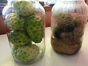“The primary use of ‘ōhi‘a‘ai is lā‘au,” Kawika attests. “Whenever you talk to the kūpuna about mountain apple, the first thing that comes to mind is medicine, not food, because that’s how it was primarily used. I mean, it only fruits for like a month out of the year. You’re not going to plant agroforestry of that for a month’s worth of fruits. It takes up a lot of time and space, and it’s a very strong medicine, and a useful wood.” “We like to take a lot of the medicinal products from the base of the tree,” Guy explains, “because that’s where the tree is the strongest and it holds up the tree. So the strength is near the bottom of the base of the tree always. You can always find the strength of the medicinal purposes of the plant in the stems and in the bark near the base of the tree. "They have a pōpolo plant that they used to use for broken bones. And you take the bottom of the root and the bottom of the bark and you mash it all together with some Hawaiian salt and you do some pule and some prayers and you rub it in the skin and then you put some of that koali mix that I mentioned earlier, the koali and the Hawaiian salt mix, mash it together and you put it all around and you wrap it up with ti leaves and noni leaf and leave it on for like three days if you can—for 36 hours—and when you take it off, you are pretty much healed. And the swelling is gone, everything is gone, the pain is gone, it’s strong again. It’s crazy.” “If you have a sinus congestion, you want to use the laua‘e fern, and what you do is you get the oldest of the lawai‘a fern, you pull the whole root system out of the ground with the plant, cut the stem off, wash it down and then put it in a pot of water, make a tea out of it and drink the tea. Within five minutes your congestion and your sinuses and everything is clear. This is the native lawai‘a fern. It’s always in the mountains and in the heiau. You can find them all by the sacred grounds. Because that’s where they always were. That’s why I don’t have to gather so much, it’s everywhere. You just got to know what illness somebody has and I just know certain areas around the island where I can find, this, this, this, this.” Guy talks about treating cancer. “Before I gather, I usually start off with a simple prayer every day. It’s basically starting off with the Lord’s Prayer, but in Hawaiian: ‘Our Father who art in heaven, hallowed be thy name. Open the doors for the children for they are our future. Forever descending from the heavens and back again, Amen’.” “The blessing that I got is that I can identify the plant just from the words that my Grandma taught me and that she showed me. She drew pictures, hand drawing, and then I could tell what I’m looking for now, and just see those little drawings. Yeah, just learning that stuff at an early age and it just stayed in my brain and it’s stuck in there and now I can just identify it just by walking around. In the forest or on the side of the road, pretty much anywhere, on the beach, it’s everywhere. Life, and good life in living, is all around us. “Say I’m looking for the seaweed for the medicinal purposes for the women. I’ll ask in the light as I’m standing by the shoreline, ‘Which angle do I go, which way do I go?’ and almost automatically the spirit can just guide me and I can just go right to where it’s the promised land. Honestly, I don’t have to stay there long—ten or fifteen minutes and I’m done. And other people will go look for the stuff for hours and they can’t even find it. But it’s knowing what you’re looking for also.” “There’s a lot of the medicinal seaweed that helps women, especially when they are going through their ma‘i or through their menstrual period. They lose a lot of blood so they lose a lot of iron and iodine. And there is a particular seaweed called limu kohu that grows all over this island, you’ve just got to know what it looks like. And it helps the women replenish their blood and their iodine and gives them back their energy so they don’t feel so sluggish anymore, and it picks them back up and so everything is good again—pono. “Noni is a cleansing agent. I was taught by my grandmother when we were young. She would ferment a couple of the fruit in a big glass jar and we’d have to drink that fermentation at the bottom. A big tablespoon every day. What it does is it cleans the body, cleans your pancreas, your liver, your kidneys, everything in your body, so then you’ll be closer to god, and cleanliness was always godliness. So that’s how we have this connection with God because we’re always clean from the inside out—not just the outside in, but the inside out also. “We also make our own salt here, out of the clay beds on the west-south-west side of the island. But also after we are done making the salt, we add alae to it. There are two different types of ‘alae dirt. One is really dark, dark red and it's a female dirt and it is good for human males that have bad blood diseases. And then the male dirt has white streaks in it, and now that’s good for female humans. And it’s been put through the laboratories, the United States, and they checked it and they said yes, it is medicinal, it is part of the lā‘au lapa‘au of the Hawaiian culture, and then that’s why we never had any bad blood diseases, because we knew how to cure it right away.” “This is Kaua‘i salt, Kaua‘i ‘alaea,” Leilani offers. “Every island has its own ‘alaea. Kaua‘i is very rich I believe. I was taught it’s female, which is good for male and men, the opposite kind of thing. But this is very old from north shore side. It was passed on to me by my husband and so I use it in the salt to help with the immune system, to build a stronger immune system. And you can mix it with Hawaiian chili pepper, salt, not just as a seasoning but it helps with ailments like a congest