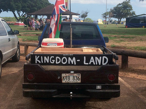 “Through the Overthrow we saw a rebranding of who we are and what we are,” Donovan remarks. “They systematically took just what was appealing to the eye and promoted that as Hawaiian culture, and removed our spirituality from that—removed our beliefs and our social structure, overlaid this western mentality over the Hawaiian beliefs. So today it’s a struggle for a Hawaiian to reconnect with what once was, because that information has been so deeply suppressed and kept from our community. We do see it coming back. “We don’t quite have the understanding and the knowledge as a community of how great that impact has on us today. And so there are many of us who have been dedicated to educating our community of the current political situation. Many of us were actively involved in getting our community a little more involved in politics in order to be able to reverse some of those injustices that have been done. So we can at some level create legislation and re-create a situation where Hawai‘i can become the influence in the world that it once was, and not just what it is today—which is a far stretch from what we once were. “They called it a ‘dead culture’ for a long time, and we were leaning towards believing that. But the truth is, with the cultural renaissance during the seventies and the birth of the Hōkūle‘a and their first voyage, we’ve been able to come to realize that these knowledges of the Hawaiian people were never really suppressed, never really extinguished. The concept that came into play at that time is, what’s sacred should be kept secret, and the reasoning behind that is that in order to perpetuate these beliefs and keep them going for the time that would be more suitable for these secrets to be revealed again and to be lived, those secrets and those traditions should be perpetuated and carried on so when the environment was more acceptable, we could revive those. “There’s a global arising happening now. Indigenous cultures all over the world, we’ve seen it reclaiming their identity, reclaiming their place and making a stand in those places, where they belong. The places that governments have come and ejected them from or disregarded their connection to. And that’s basically what we’ve experienced as an indigenous people, as Hawaiians in our own homeland: we have these influxes of people who aren’t from here who decided that they knew better for us and wanted what we had and took it from us, and disregarded us and our place and our knowledge and our techniques and our practices and our rightful place: here. “I’m inspired because today we see so many more people having these conversations openly. The whole idea and concept behind the restoration of the Hawaiian Kingdom, this is a common conversation that we engage in nowadays, but it was completely kapu before. We hear it everywhere now. The nightly news is reporting about Federal Recognition and Hawaiians engaging in being recognized as an indigenous population—which never has happened. We’ve never been federally recognized. And I’m not saying that I’m for federal recognition, I’m just saying that the conversation is good. "Engaging in these conversations is good because it opens up the eyes of the people around us and it opens the ability to understanding the community that lives here. The community who rightfully belong here. “Ultimately, when we engage in these types of conversations and begin to broaden the understanding of our community, it creates a situation that ultimately the pinnacle of what we strive for as spiritually connected Hawaiians is the ability for kindness, compassion, and understanding to flourish. When we engage in those three simple aspects of life, when we engage every single kindness, when we engage every single understanding, when we engage in everything with compassion, it goes to that whole saying summarized, “You’ll catch more flies with honey than vinegar.” Essentially that’s foundational stuff we’re talking about, you know kindness, compassion. “Quite a few years ago,” Ka‘iulani recalls, “around the time of the Apology Bill—Public Law 103-150, when then-President Bill Clinton said he was sorry—in the form of law—to the Hawaiian people for the illegal invasion, overthrow and theft of our kingdom, I found myself at ‘Iolani Palace. There was Ms. Haunani-Kay Trask on the steps, and she yelled, ‘We are not Americans, we are not Americans, we will never be Americans!’ and it was all over for me. I realized what was wrong with me, why I felt so stuck in my life. "All my life I heard the whispers, the ‘S’ word—sovereignty. Our kūpuna were not allowed to say it, and we had American flags and we were Americans. But I’d heard the whispers. And all of a sudden someone was saying what was wrong with us and it just clicked for me. Ever since that day, I’ve kind of dedicated my life to communicating the truth of our illegal occupation here in Hawai‘i by the U.S. military-industrial complex. “This is the brain washing: you’re not an American but you’ve been raised to believe you are one. And then deep down inside you know something is wrong, especially when they are carrying your bones off in paper sacks and throwing them into the trash can, or whatever. So you know something is wrong, and then finally you name it. "But then you realize, ‘Okay, I’m not an American, I’m a Hawaiian in captivity. I have to play their game.’ And it all looks good on paper sometimes, their game. I found out that every time I signed into a Section 106 meeting, my signature was given to the Department of Interior to be used for Federal Recognition—which I am completely against. I found out that section 106 is merely a check point on the check list to get through it and lay down the cement on the bones. I found out that there is no stopping this illegal government. “So today what I tell people is that we have to prepa