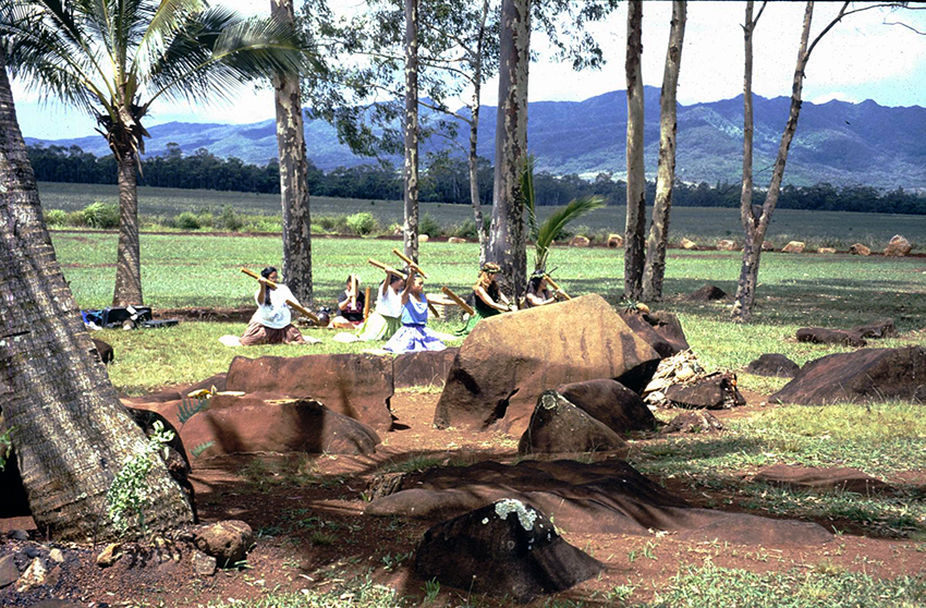 Dennis explains the concept of mana, and its connection to voyaging: “The five descendants of ‘Aikanaka and Hina-hānai-a-ka-mālama down to Laka and Luanu‘u are associated with voyaging. The theme of their stories is the importance of maintaining or restoring chiefly mana through contact with an ancestral homeland. “Mana is the creative and procreative power of the Universe: it makes plants grow, fish and animals multiply, the human population increase; it makes human projects, such as building houses, canoes, lo‘i (kalo ponds), or fishponds successful. It is embodied in “specific gods, spirits, individuals, rites, or objects. Mana was exhibited in persons, in power, strength, prestige, reputation, skill, dynamic personality, intelligence; in things in efficacy, in ‘luck’; that is in accomplishment. These qualities were not mana; they were the evidences of mana, which was itself but the focusing and transmission of the potency of nature.”