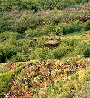 | In the waters of the bay below the hill on which these heiau sit lies yet another sacred site, the heiau Hale o Kapuni.