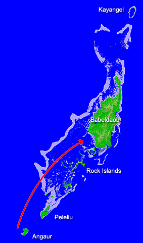 “A lot of migrations came over to Palau, according to what studies been done,” Walter says. “The earlier migration to Palau, if there was one, they first settled on the Rock Islands. And there they lived in the caves, and Rock Island villages. "Then maybe when they over-fished, or they didn’t have enough water, since there are few resources over there, so they probably migrated to all the way to the big island, and that is where they are. So most of the old migrations were coming from Rock Islands.” “There was a village up north by Kayangel atoll, up there, called the Ngeruangel, the sunken village. So maybe there was a migration from that direction, from the north too, maybe connected to the rest of Asia. "But all the migrations to Babeldaob are from the Rock Islands. Probably the direction the island people came—the ones occupying this island now—was first to Angaur, Peleliu, then the Rock Islands."